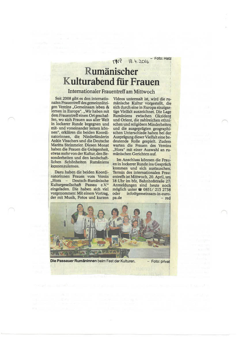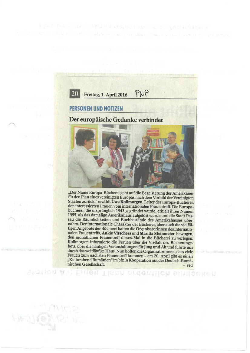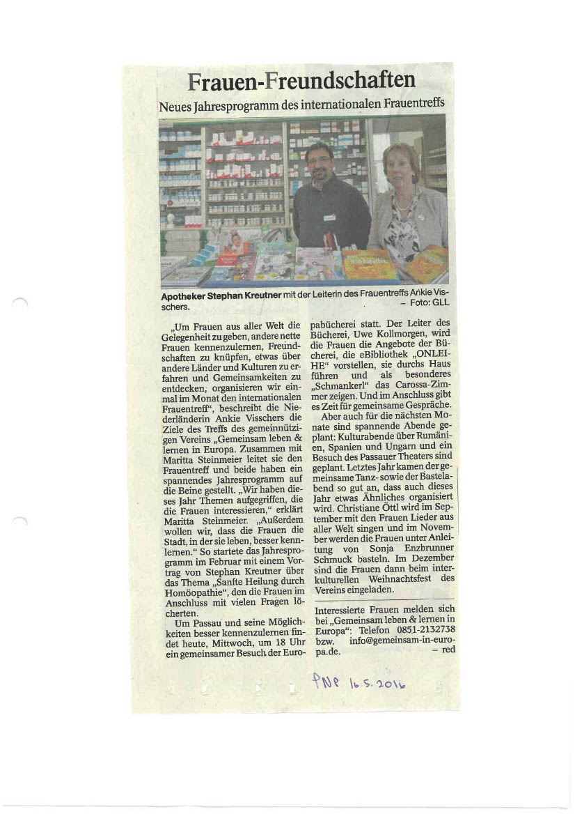 Frauen aus aller Welt an einem Stammtisch, Passauer Neue Presse, 01.06.2011