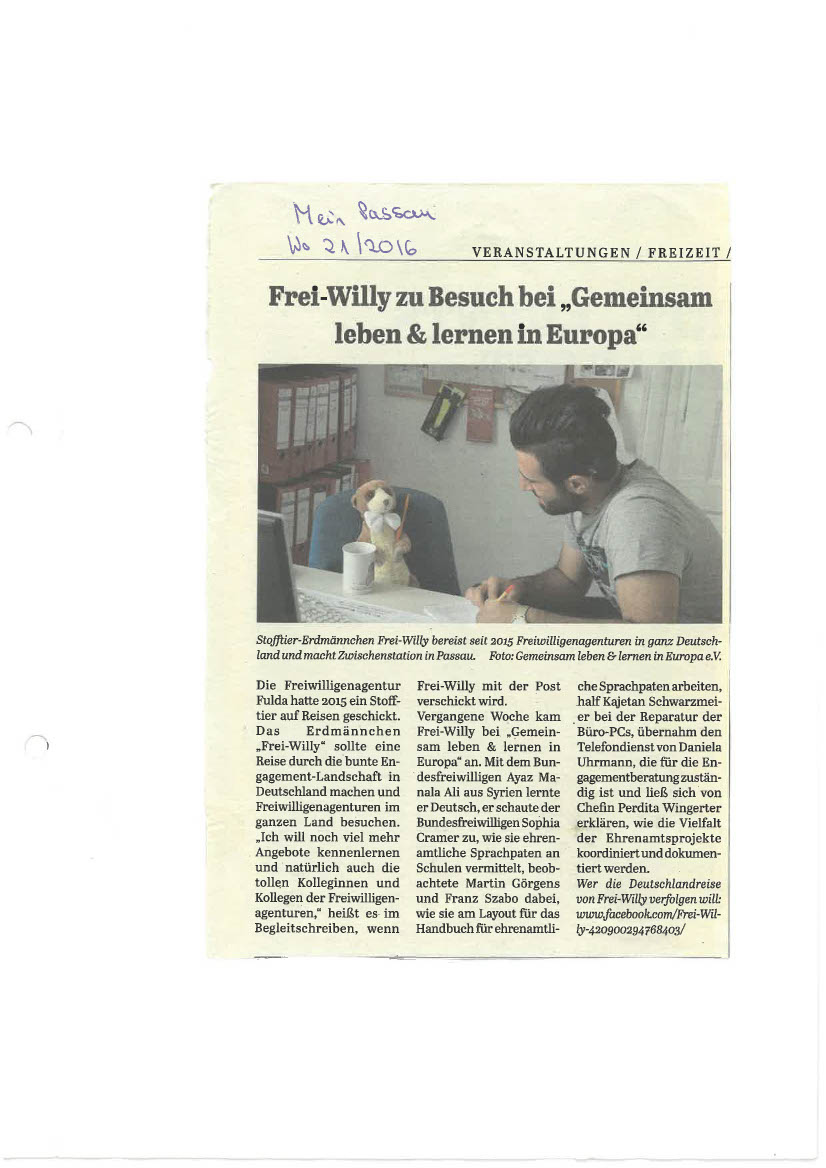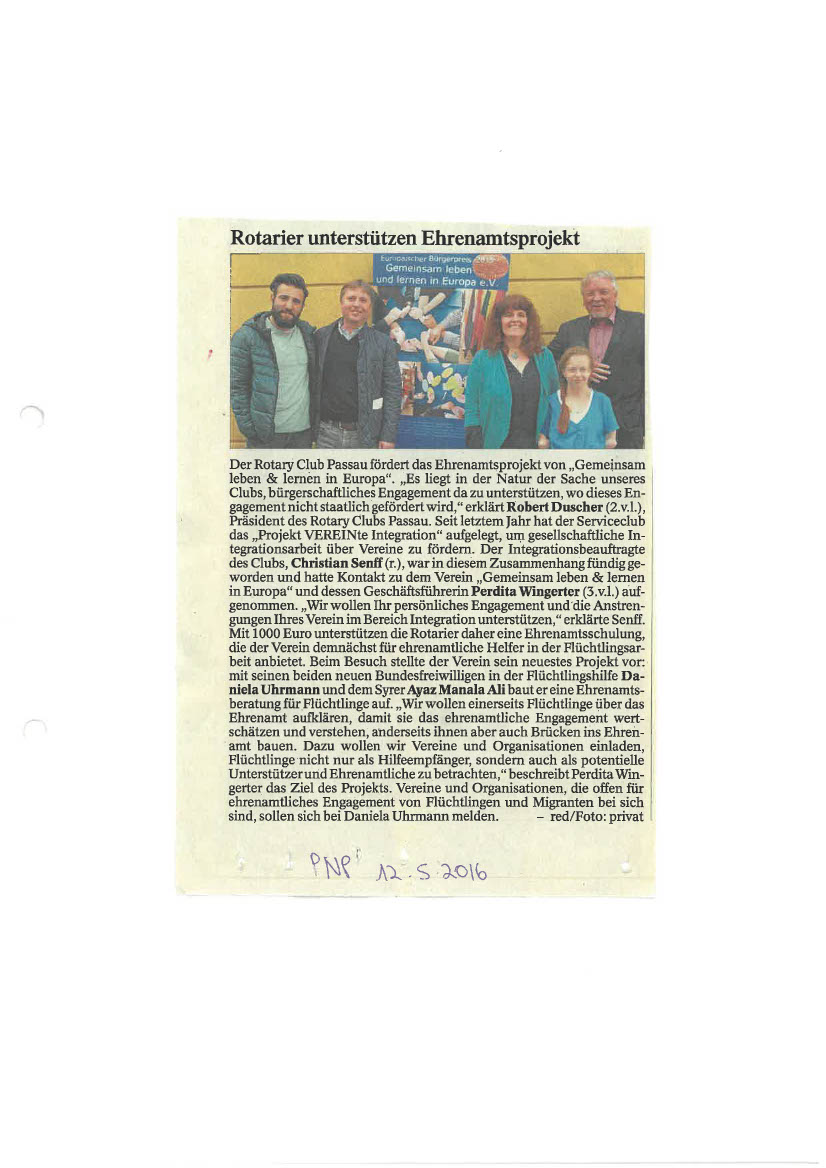 Europäisches Jahr der Freiwilligenarbeit, Passauer Neue Presse, 07.06.2011