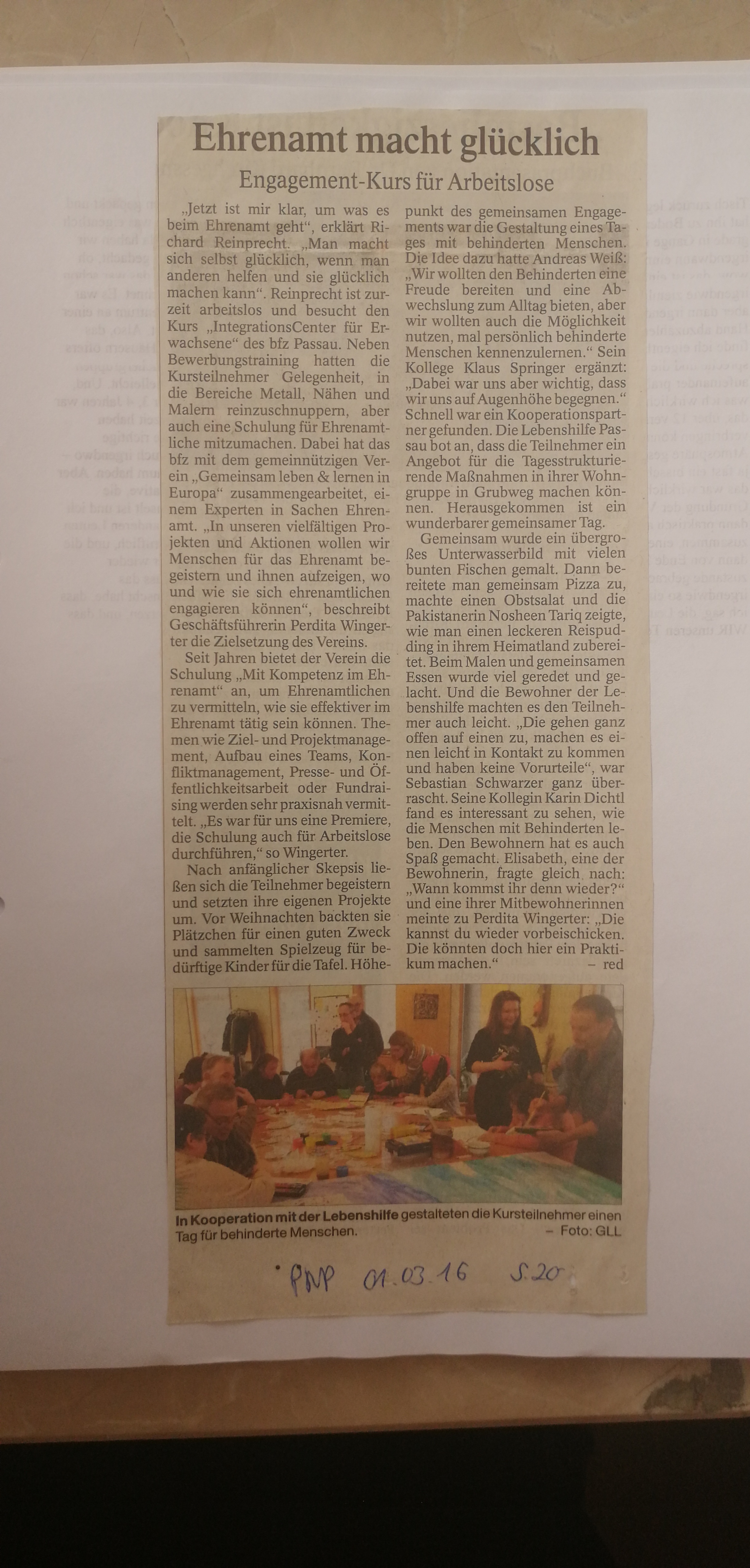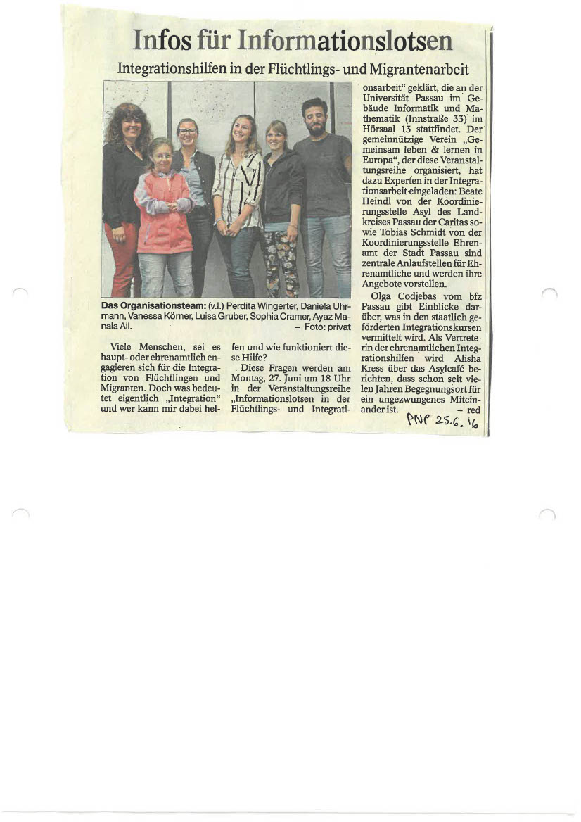 Kontaktbörse für Ehrenamtliche, Passauer Neue Presse, 25.06.2011