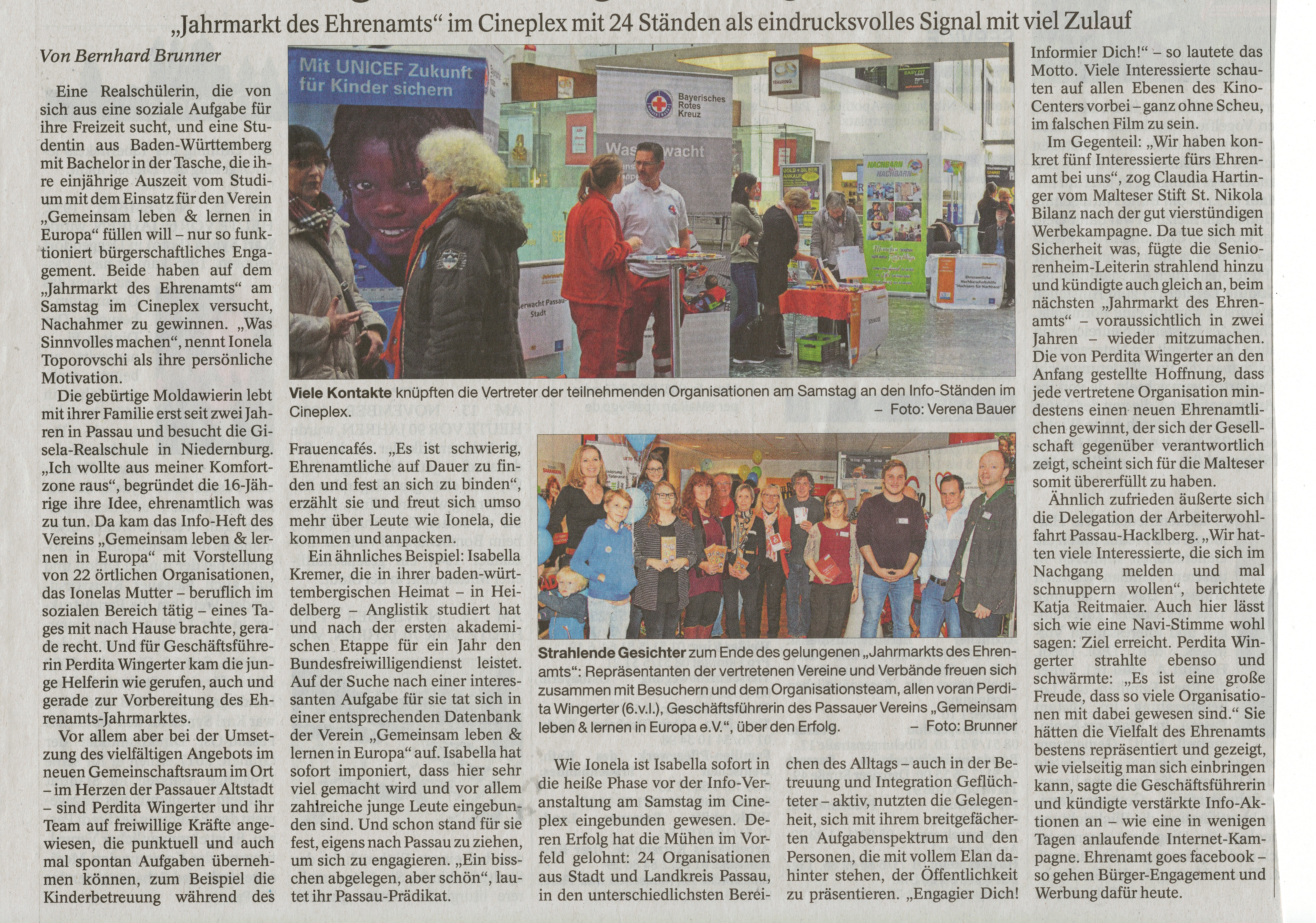 Präsentation auf dem Jahrmarkt des Ehrenamts, Passauer Neue Presse, 21.05.2011