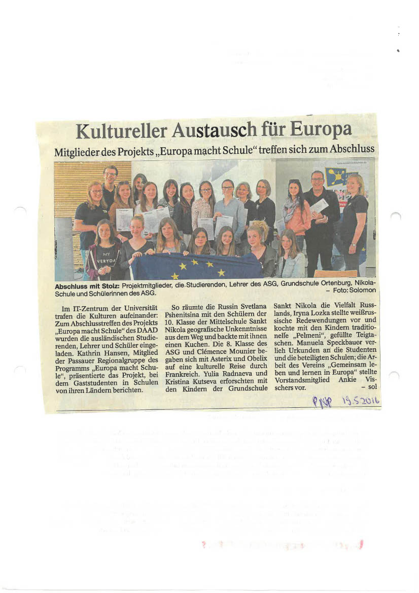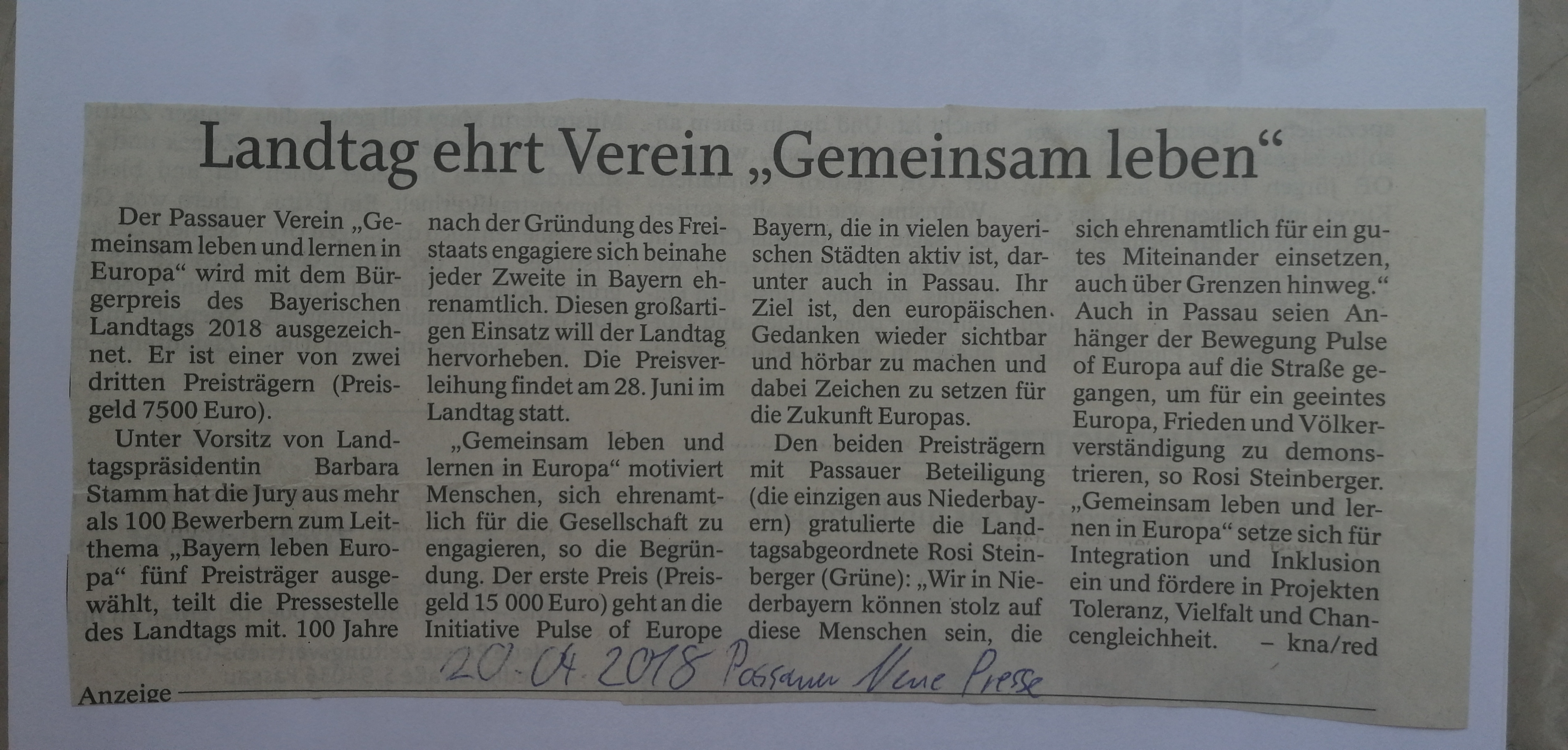 Gemeinsam leben und lernen in Europa, Passauer Neue Presse, 07.06.2011