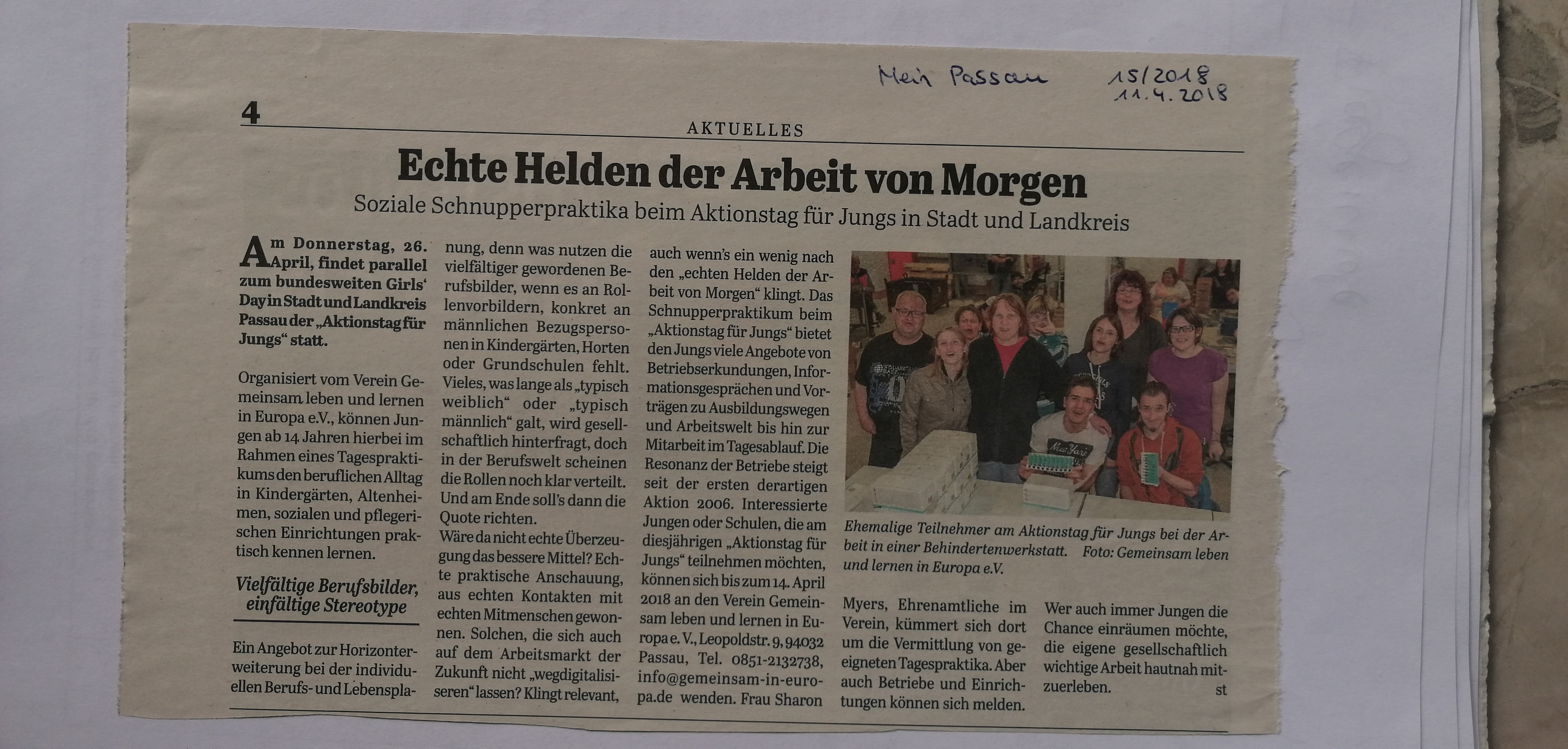 Boy's Day, Pressemitteilung Azurit Gruppe, 24.04.2009 hier