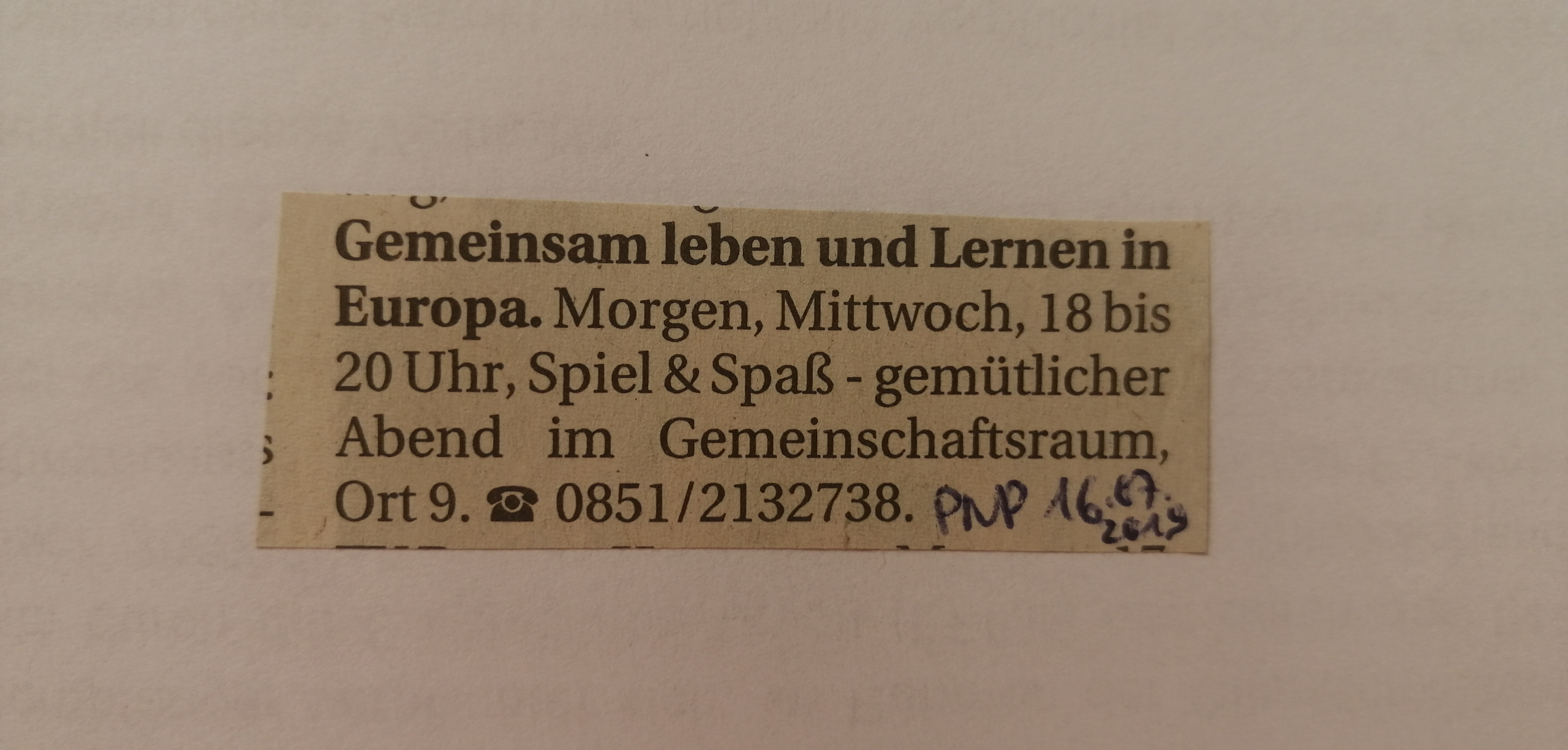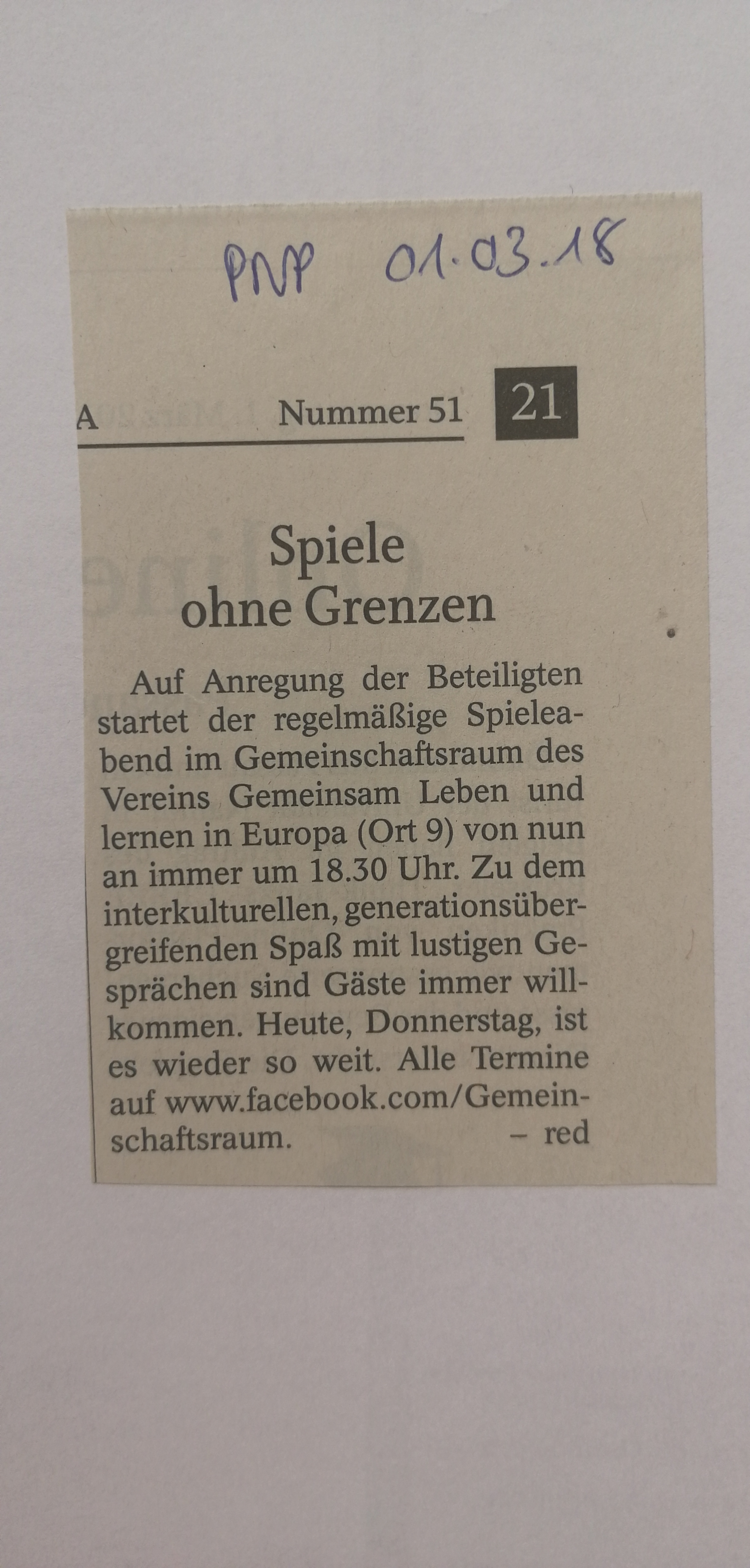 "Spiele und Spaß - Ein gemütlicher Abend miteinander", PassauerNeuePresse, 19.08.2025 hier