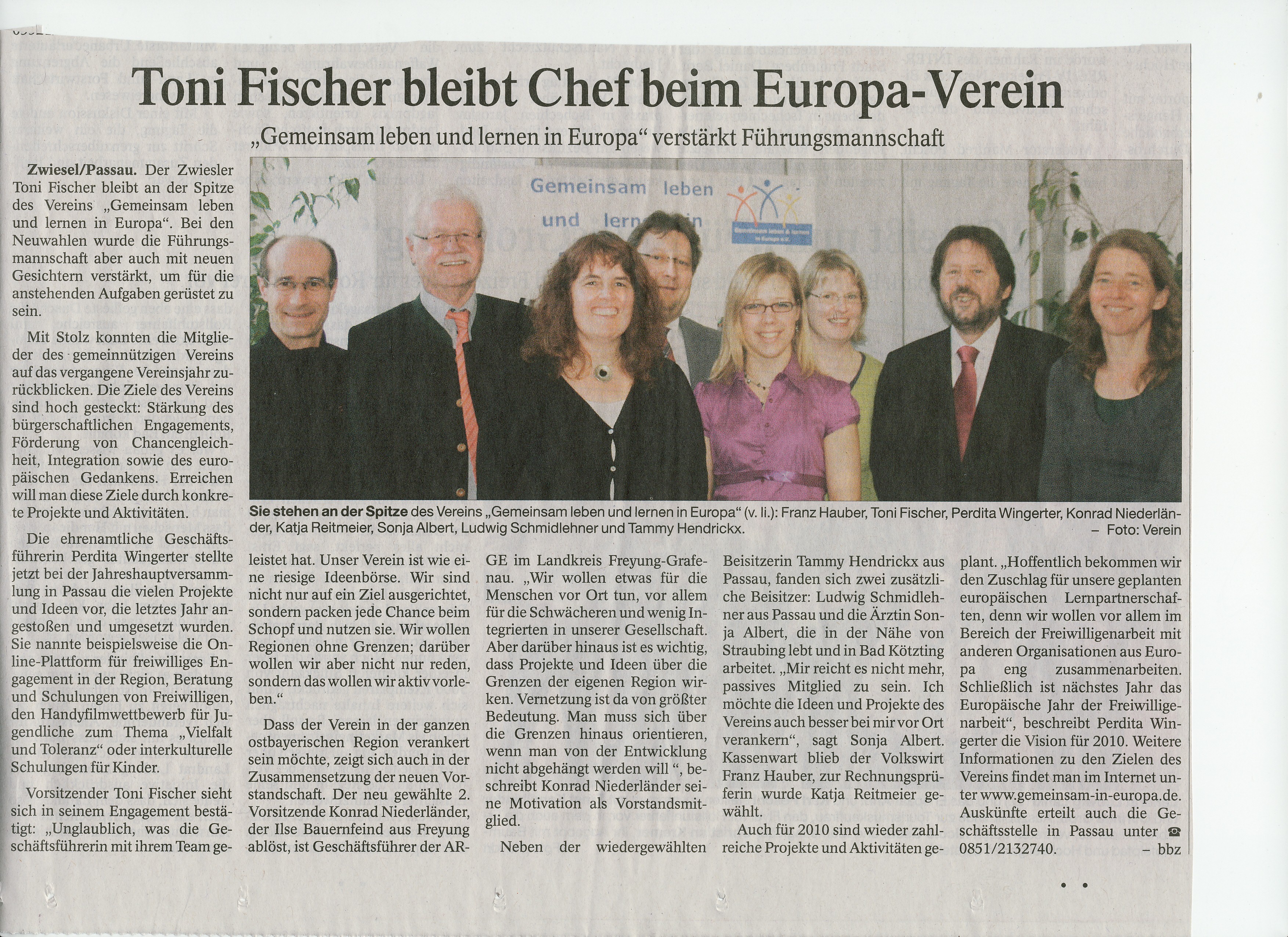 Toni Fischer bleibt Chef beim Europa-Verein, Passauer Neue Presse, Juli 2010 hier