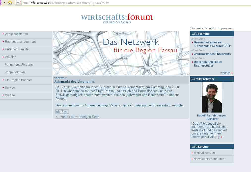 Jahrmarkt des Ehrenamtes, Wirtschaftsforum Passau Online, 02.07.2011 hier